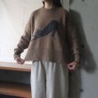 大きく伸びをする猫をフロントに大胆に描いた、大人の遊び心が光るニット。