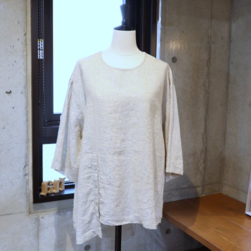 8オンスの軽やかなデニム生地は、適度なハリがありつつさらっと肌離れがよく、季節を問わず快適にお楽しみいただけます。洗うほどに風合いを増すムラデニム特有の味わいも魅力。天然素材ならではの黒や茶のネップも、表情のひとつとしてお楽しみください。