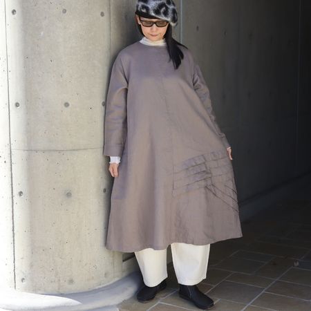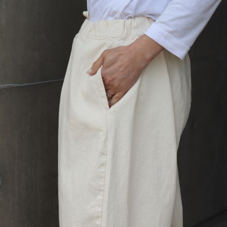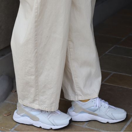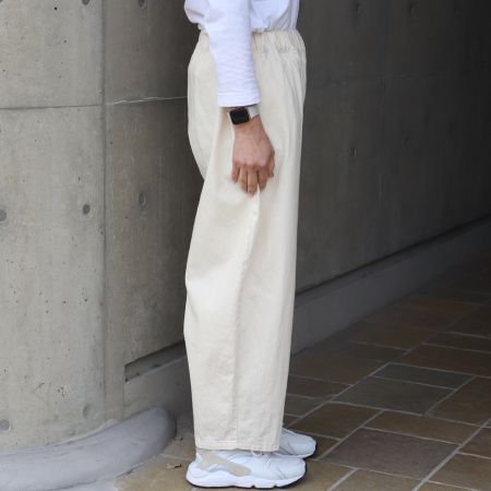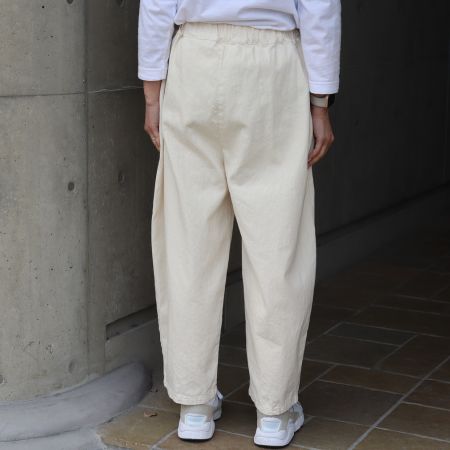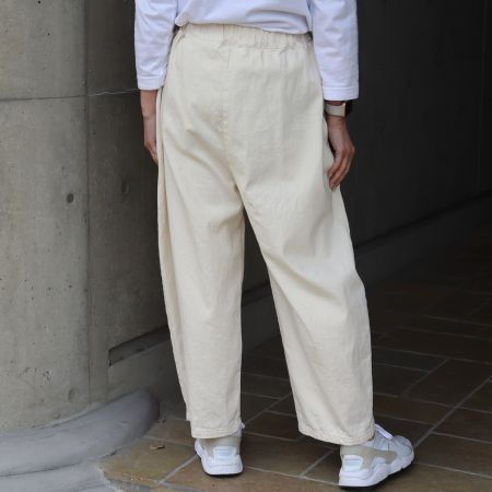ゆったりとしたフォルムながら、裾に向かって自然に細くなるテーパードラインで、全体はすっきり。