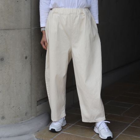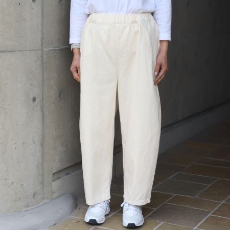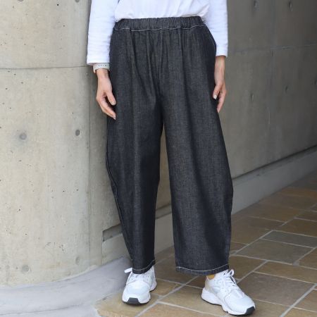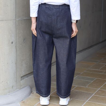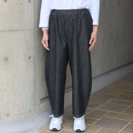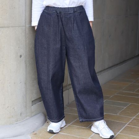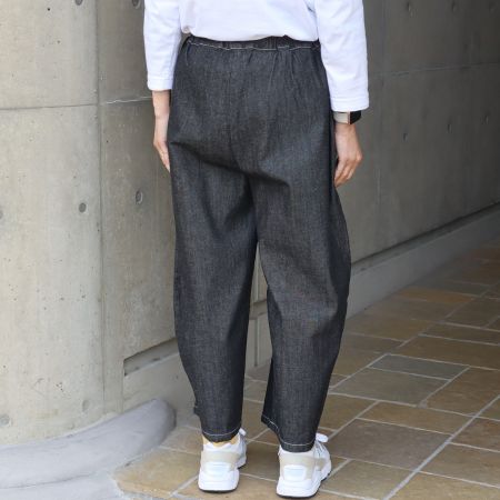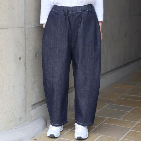 ■丸みのある立体シルエットが魅力の、8オンスムラデニム エッグパンツ。