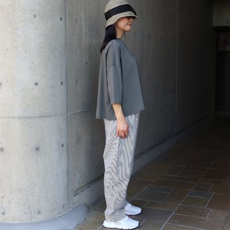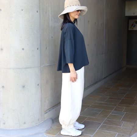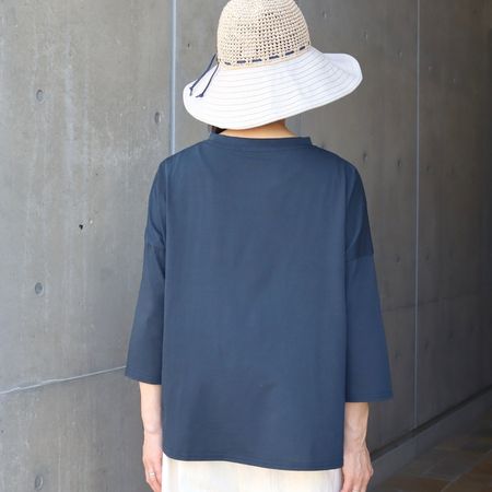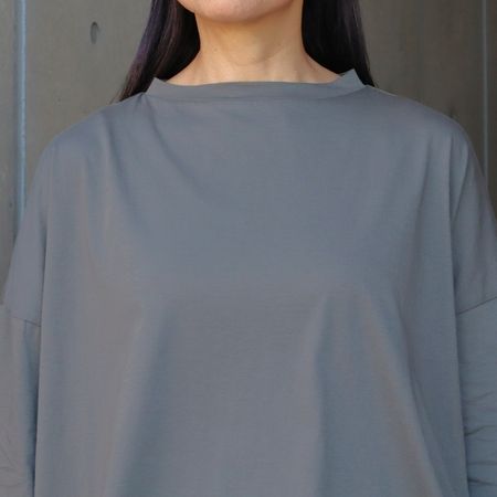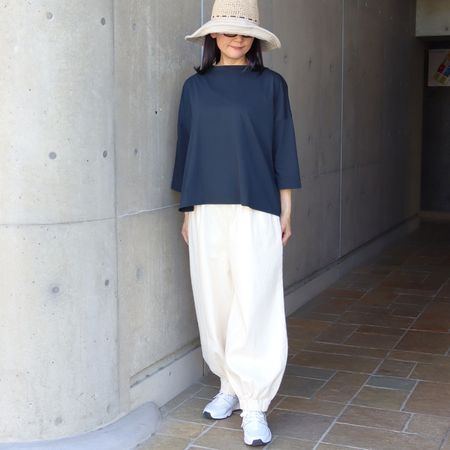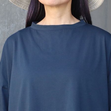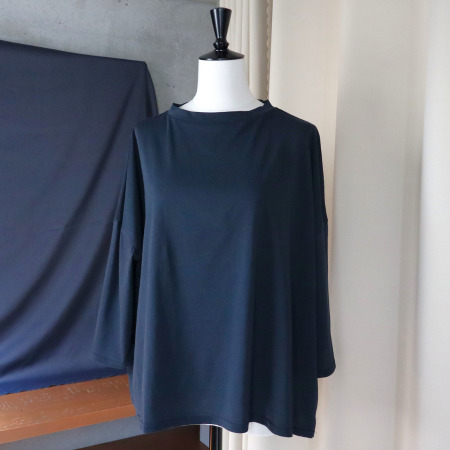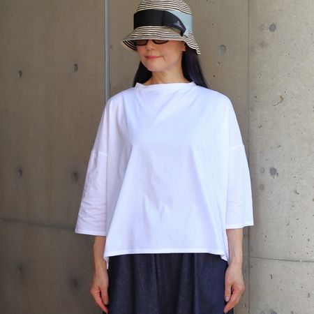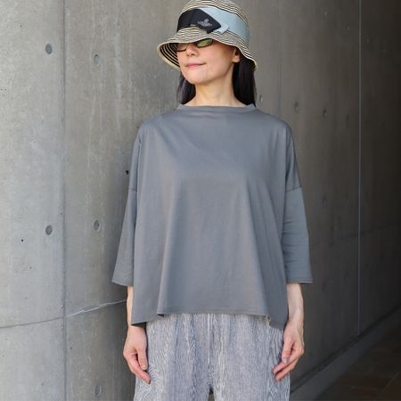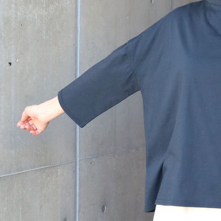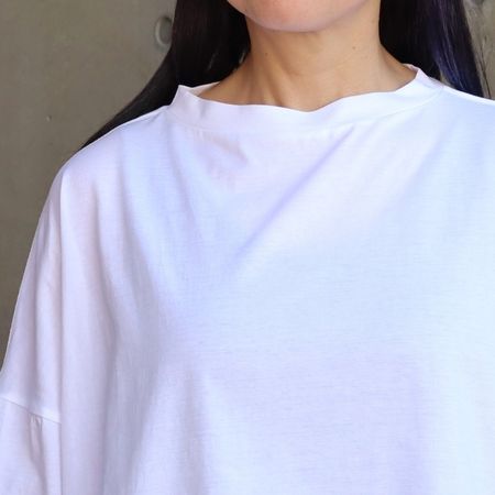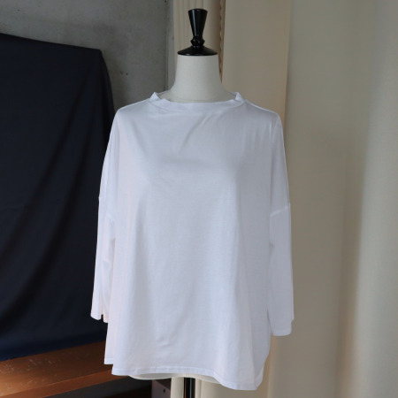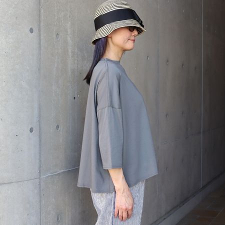 ■すっきり見えて、ゆったり着られるサイロプレミアム ワイドT 7分袖。シンプルながらも上品な印象を与えるモックネックデザインで、1枚でもインナーとしても活躍する万能カットソーです。