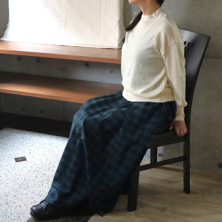 コンパクトなトップスと合わせればすっきりバランスよく、ニットやジャケットと合わせてもクラシカルにまとまる、着回し力抜群の一着です。