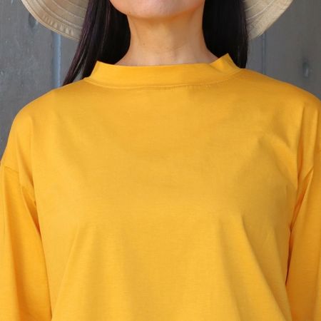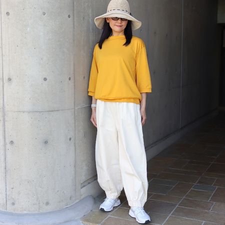その目の細かさゆえに自然の接触冷感、UVカット機能も兼ね備えています。ベーシックながらも洗練されたバランス。着る人を選ばず、どんなスタイルにもすっとなじむ優秀デザインです。身体のラインを拾わず、ストンと落ちるシルエットが魅力。横から見てもすっきりとした印象で、カジュアルすぎない上品さを演出します。