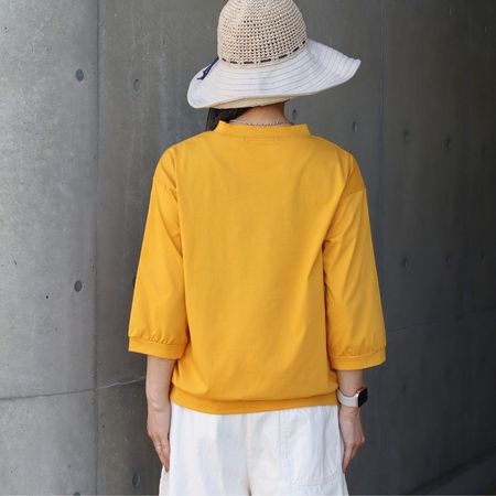 首まわりをきれいに見せてくれるモックネック風のデザイン。カジュアルな中にもきちんと感があり、アクセサリーとの相性も◎ 袖口と裾はややフィットする切り替えデザインになっており、着こなしにメリハリをプラス。だらしなく見えないのも嬉しいポイントです。