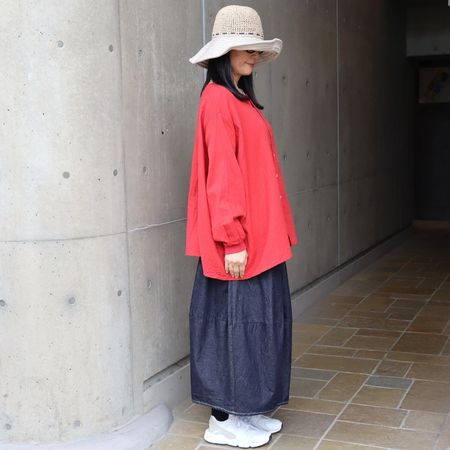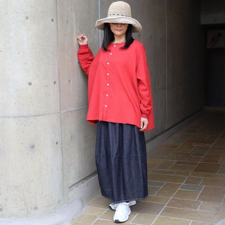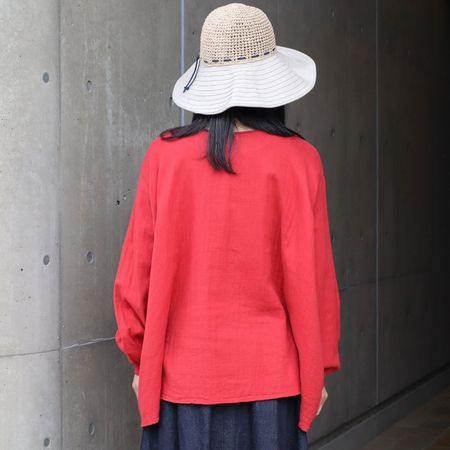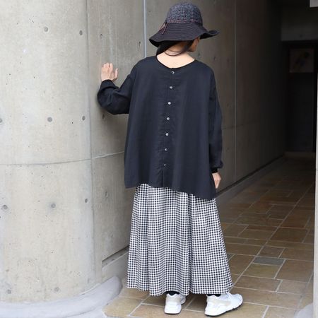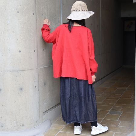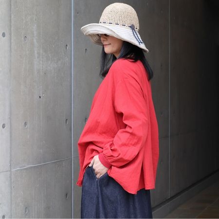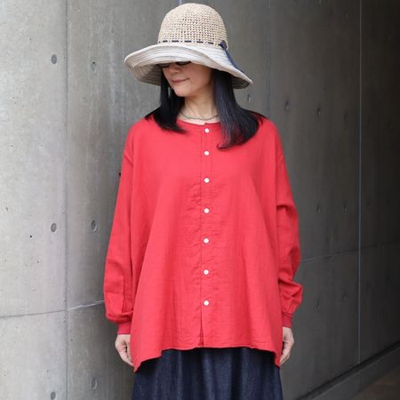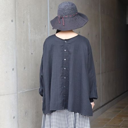 前後どちらでも着られる2WAYデザインで、ボタンを閉じれば愛らしいブラウスとして、前を開ければ軽やかな羽織りとして楽しめます。空気を含んだようなガーゼのやわらかさが、肌に触れた瞬間から優しい心地よさを実感。ワイドな身幅とルーズなシルエットが体をふわりと包み込み、リラックス感と可愛らしさを両立します。