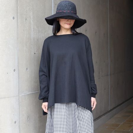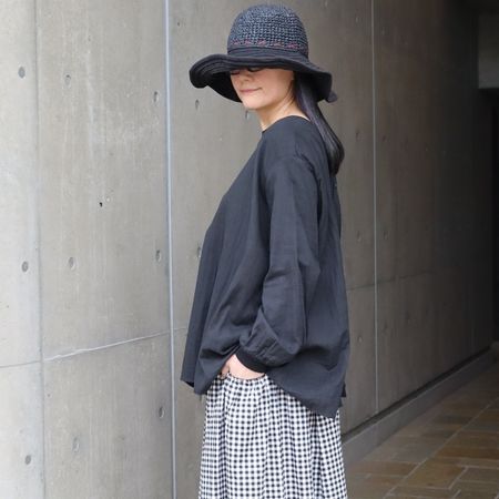 ■ふんわりと柔らかな肌触りが魅力のダブルガーゼを贅沢に使った、ゆったりシルエットのワイドフレアブラウス。