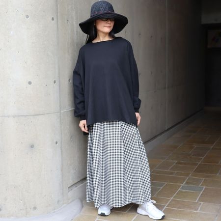 ✅体型をふんわりカバーしながら可愛らしく:ワイドな身幅とルーズなシルエットが気になる部分を自然に隠し、女性らしいやわらかさを演出。