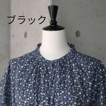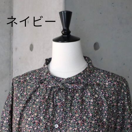 ■落ち着いたカラーの小花柄が、上品で大人かわいい印象を演出するコットン100%ブラウス。