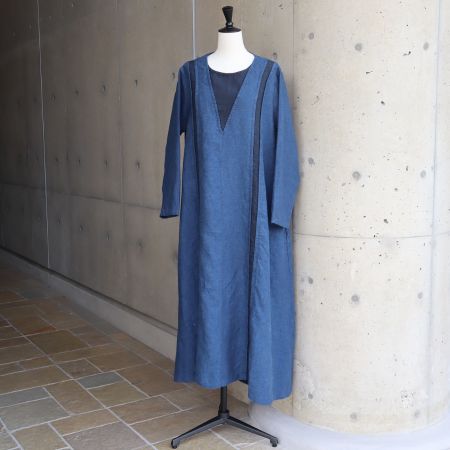 ■インディゴとネイビーの配色切り替えが印象的な、大人のためのリネンワンピース。