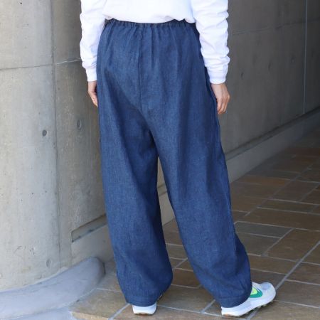 裾にタックを施すことで、まるみのある立体的なシルエットを実現。両サイドのギャザー入りの大きなポケットがアクセントになり、シンプルなトップスと合わせても印象的に仕上がります。ウエストはファスナー仕様+後ろゴム切替えで、ラクな穿き心地ときちんと感を両立。ベルトループ付きでサイズ調整も可能です。