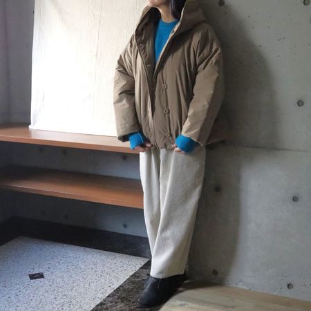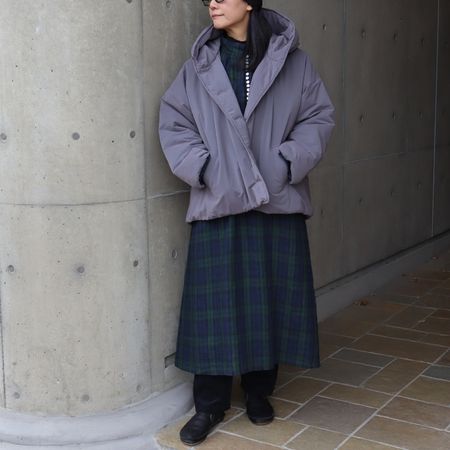 たっぷりの中綿と軽やかな着心地で、寒い季節も心地よく過ごせます。女性らしい丸みのあるシルエットと、やや広がる身幅がバランスよく、カジュアルにも上品にも活躍する一着です。