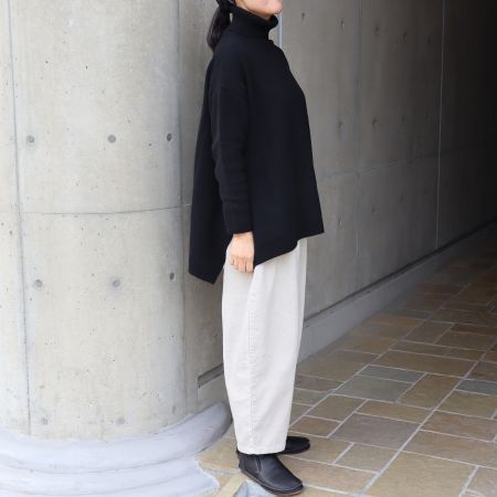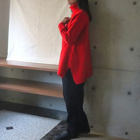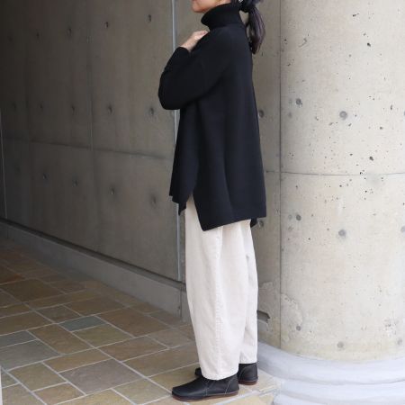 毛質の細いウールのみを厳選して紡いだ糸は、ふんわり柔らかく、肌に触れてもチクチクしない心地よさです。ゆったりとしたビッグシルエットにサイドスリットを入れることで、動きやすくすっきりとした印象に仕上げました。自然なドレープが生まれ、シンプルながらも上品で洗練された着こなしを叶えます。