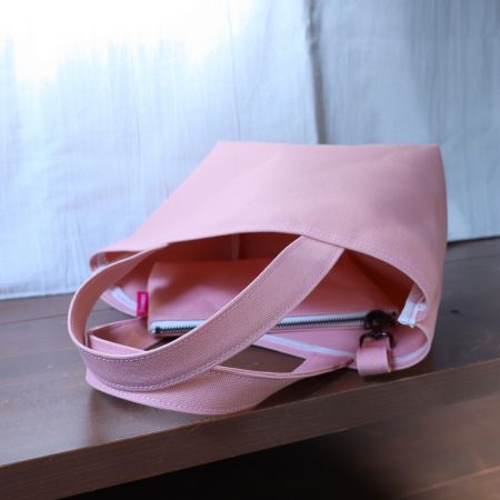 ■やわらかな色味が魅力のピンクの8号帆布トートバッグ。