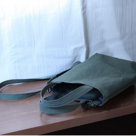 ■お客様の声から生まれた、取り外し可能なショルダーストラップ付きのカーキトート。