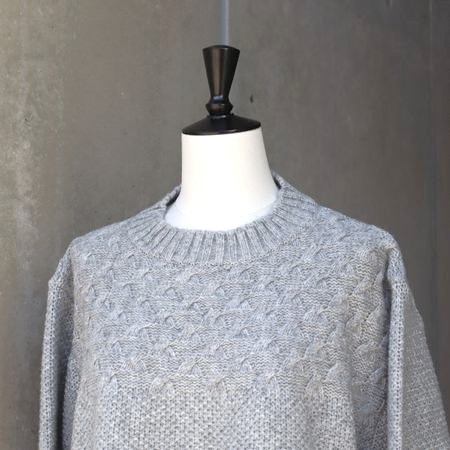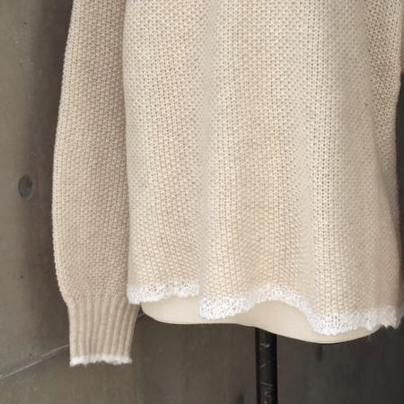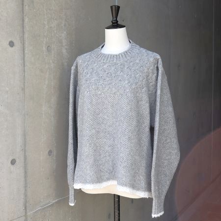 ■胸元のバスケット柄と、胸下から鹿の子柄への切り替えが魅力のミラノラムニット。ふわふわ糸のステッチが袖口と裾にあしらわれ、柔らかな雰囲気を引き立てる大人かわいい一枚です。