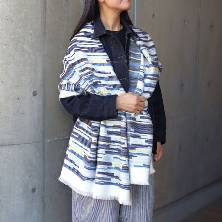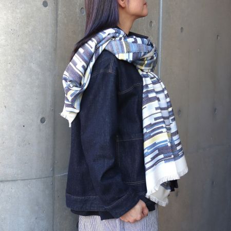 【Crescendo Yonezawa】シルクウールパネルジャカードストール