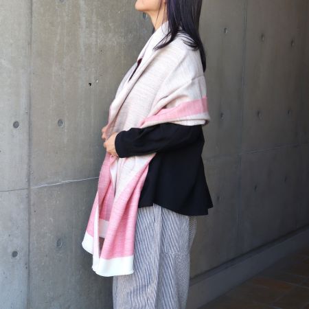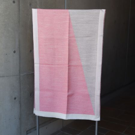 経糸にシルク、緯糸にウールを組み合わせることで、柔らかさと温かみを兼ね備えた一枚に仕上げました。1リピートの大きな紋紙を用いて表現された大胆な柄は、熟練の技術を持つジャカード織機ならでは。
