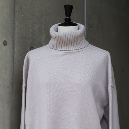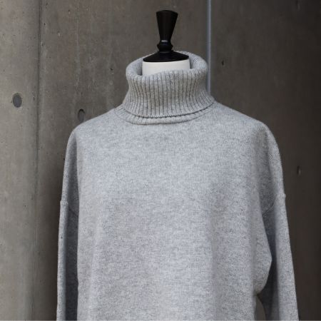■ゆったりとしたシルエットで着まわしやすい、タスマニアラムウールのタートルネックニット。
