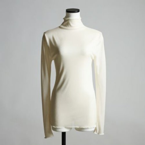 前後のネックまわりには細かなギャザーを施し、ふんわりとした立体感のあるシルエットに。身体のラインを拾いにくく、自然な落ち感が大人らしいやわらかさを演出します。