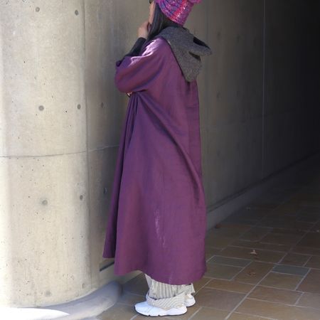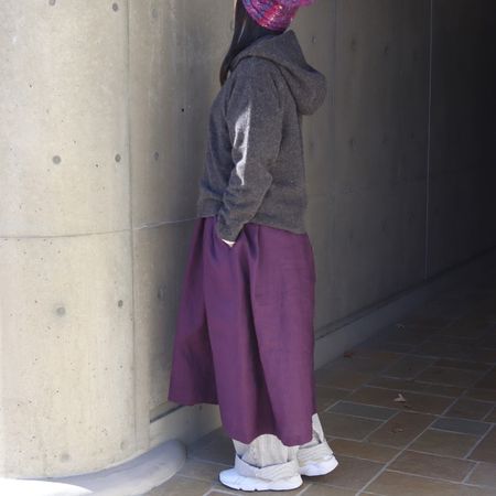 深みのあるパープルカラーは、落ち着きと華やかさをあわせ持ち、季節を問わず装いの主役に。
