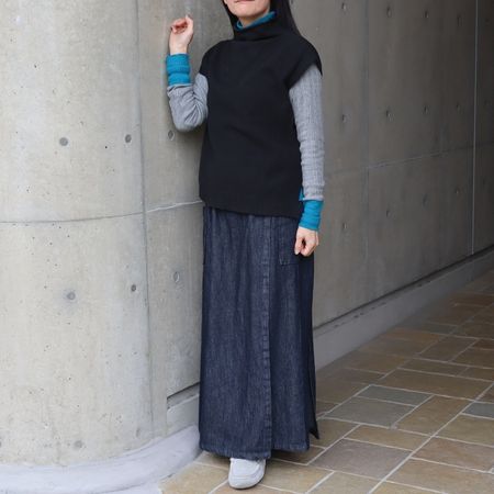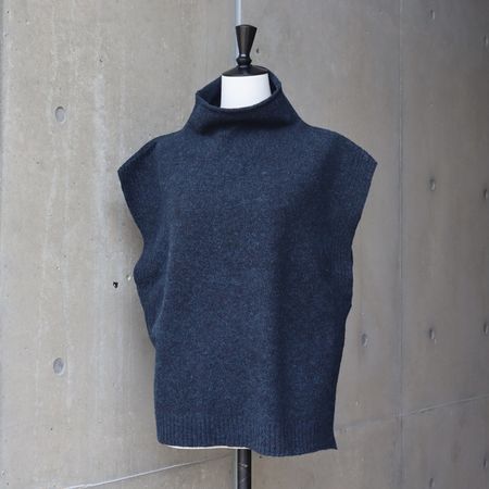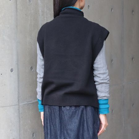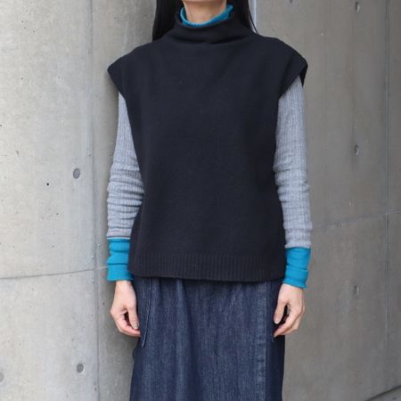 ■ふんわりとした肌触りが心地よいウール混素材のハイネックベスト。