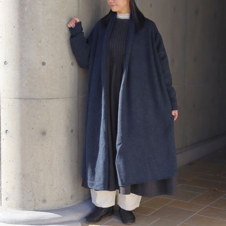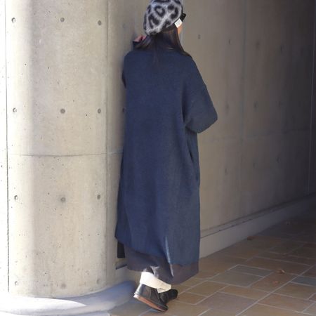 ■コットンとポリエステルをメインにブレンドした糸で、丁寧に編み上げたニットガウンコート。