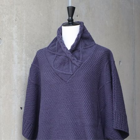 ポイントは、ケーブル編みを施した高めの襟元。