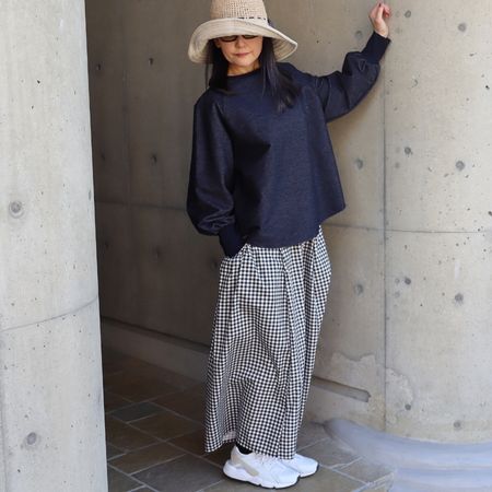 ゆったりとしたルーズシルエットと、おしりが隠れる丈感で体型をさりげなくカバー。