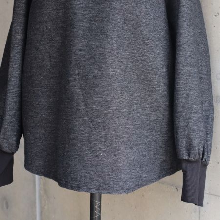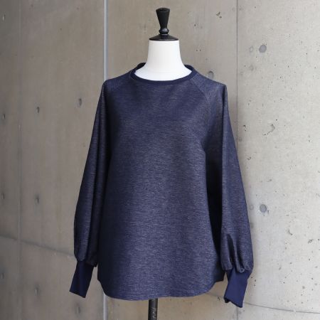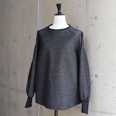 前後差のあるラウンドヘムが軽やかな動きを演出し、ふんわりとしたリブ袖が女性らしいやわらかさを添えます。