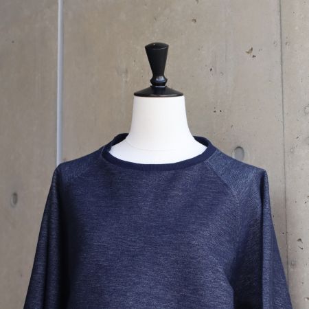 ■デニムのような見た目と、スウェットのような柔らかな着心地を両立したデニムニット素材のプルオーバー。