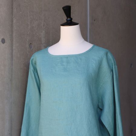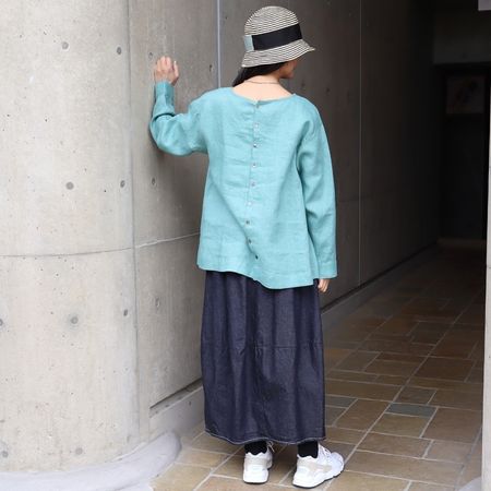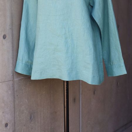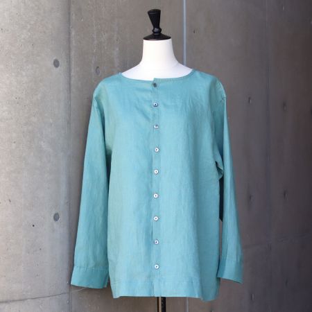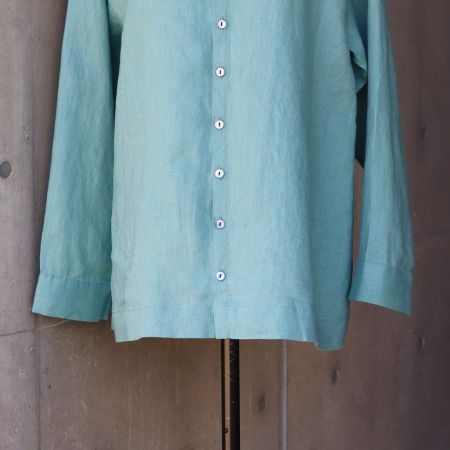 【08Mab】14番手リネン前後着ノーカラーブラウス [CF-1225HF1330]