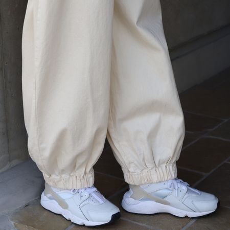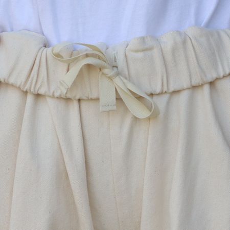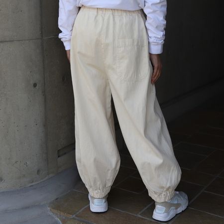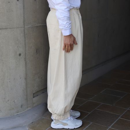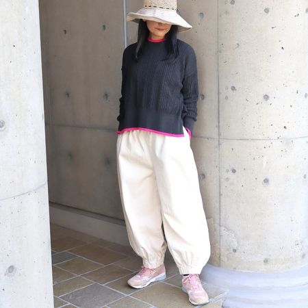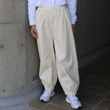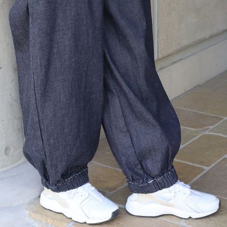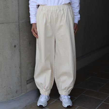 裾に幅広のゴムを入れた、ポワンと丸みのあるシルエットがポイント。