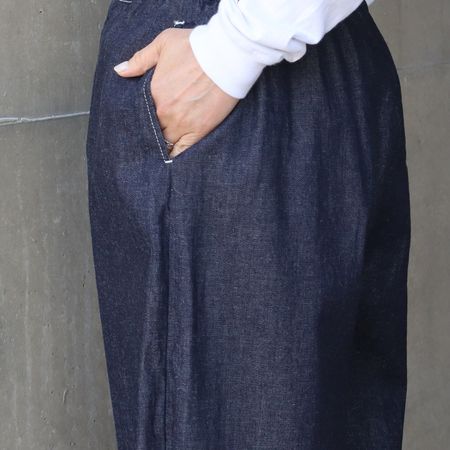 ■適度なハリ感と軽さが魅力の、8オンスムラデニムを使用した「ポップパンツ」。