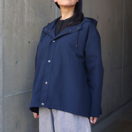 立体感のあるフードや、首元をきれいに立たせるスナップボタンで防寒性も◎