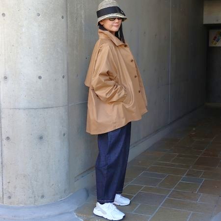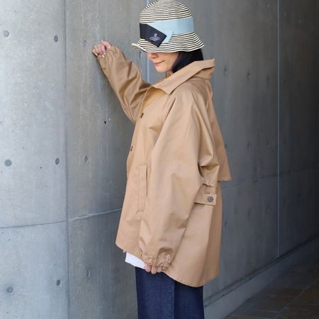 両サイドのベルトでウエストのシルエット調整も可能。フェミニンにもカジュアルにも着こなせる、春秋に活躍する上質ライトアウターです。