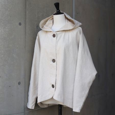 ふんわりと丸みのあるバルーンシルエットにフードをプラスすることで、