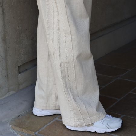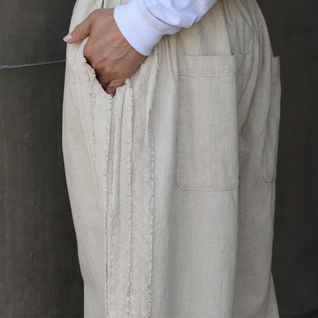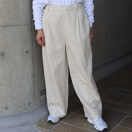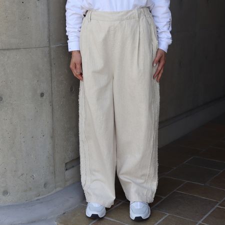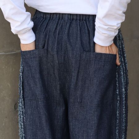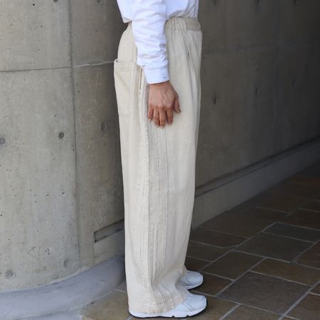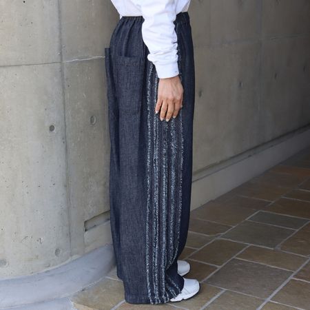 6.5オンス綿麻甘撚りデニムを使用した、サイドテープデザインのストレートパンツです。