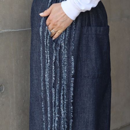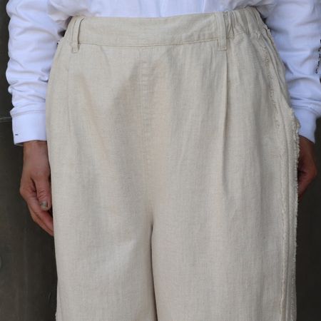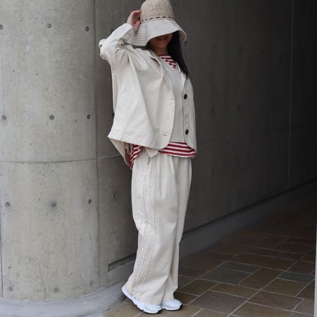柔らかく、ほどよい厚みのある甘撚りデニムは、春から初夏にかけて心地よく穿ける軽やかさ。綿麻素材ならではのナチュラルな風合いが、大人のカジュアルスタイルにやさしく馴染みます。
