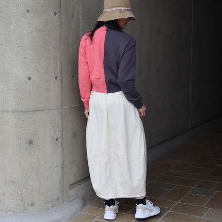 目を引く配色デザインは、コーディネートの主役になる存在感。それでいて派手すぎず、大人が取り入れやすいバランスに仕上げました。シンプルなボトムに合わせるだけで、ぐっと印象的なスタイリングが完成します。