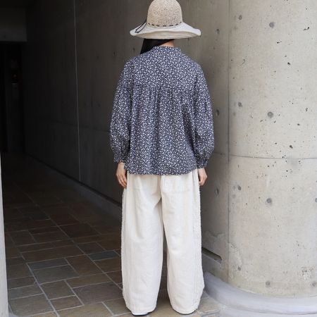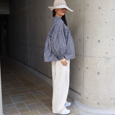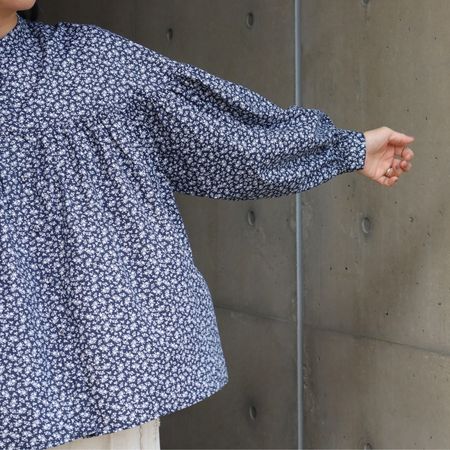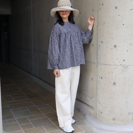 素材は綿100%。柔らかくなめらかな肌ざわりで、軽やかな着心地に仕上げました。ナチュラルな小花柄が、コーディネートにさりげない華やぎを添えてくれます。