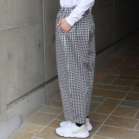 コーディネートにリズムを生み出す主役級ボトムス、ブロードチェック柄 エッグパンツです。