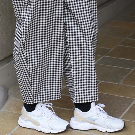 足元はソックス×サンダル、スニーカーとも好相性です。
