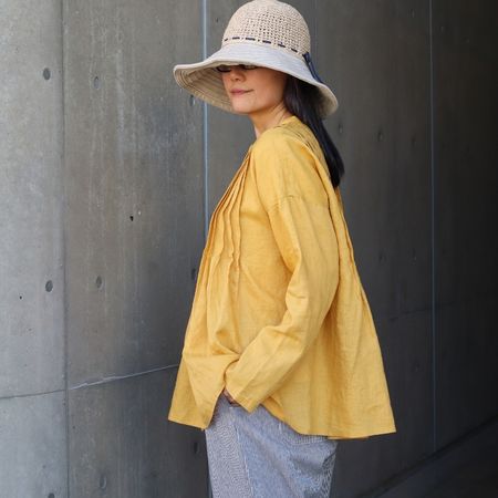 【08Mab】14番手リネン前あきタックブラウス [CF-226HF1375]