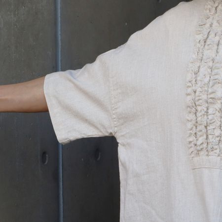 【ista-ire】4.5oz綿麻甘撚りデニム フリンジブラウス