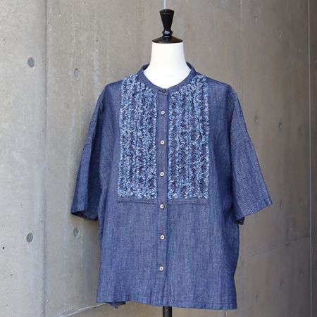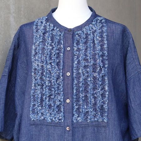 【ista-ire】4.5oz綿麻甘撚りデニム フリンジブラウス [4601-6620]
