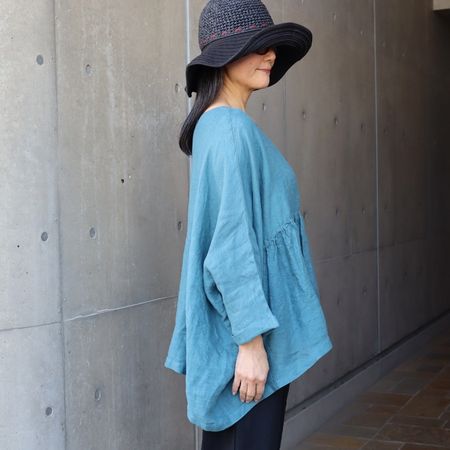 【08Mab】リネンシャンブレー2wayギャザーブラウス [CF-225HF1146]