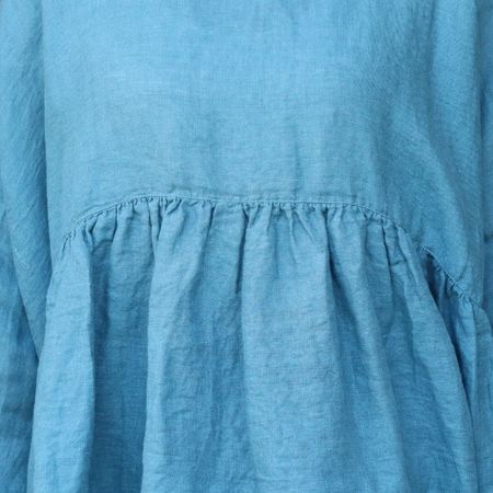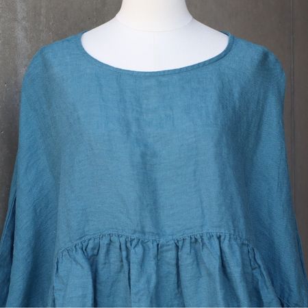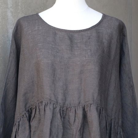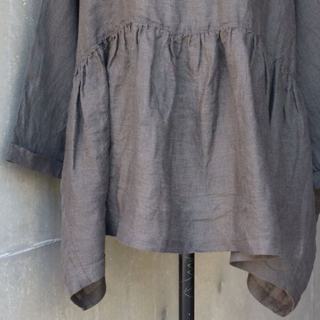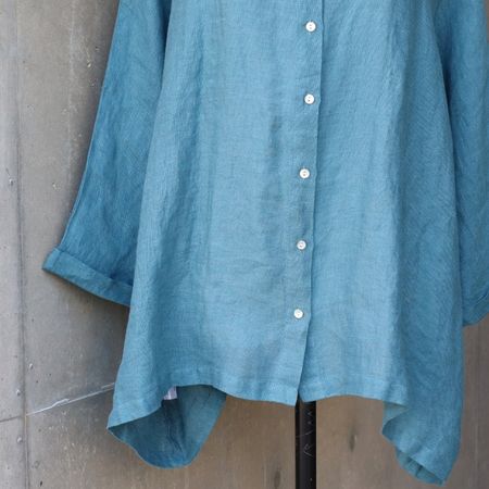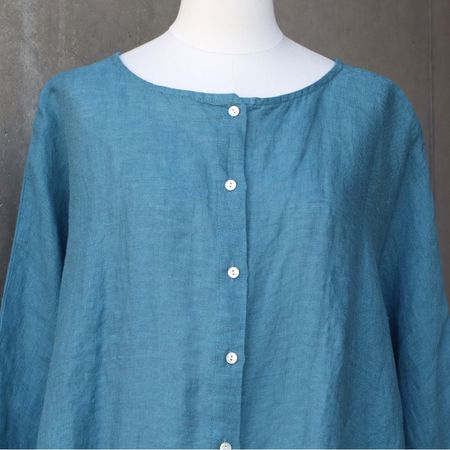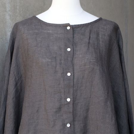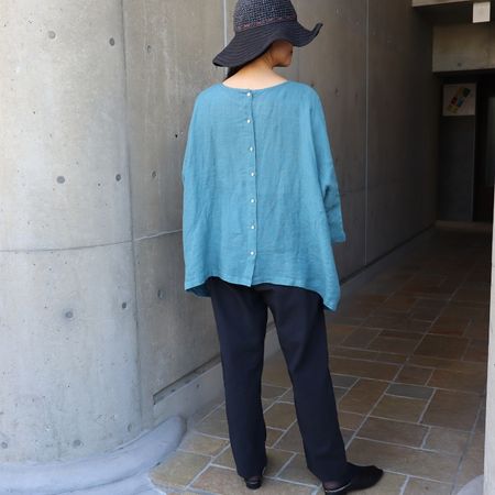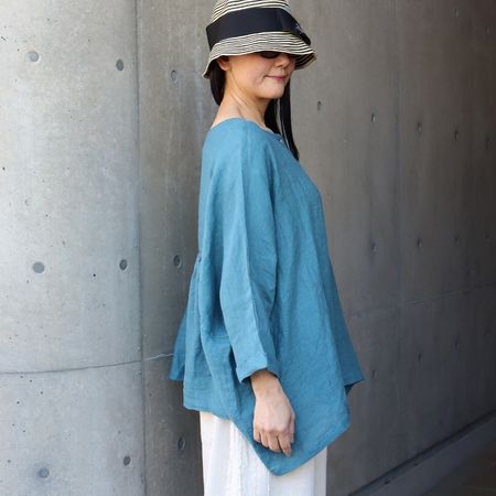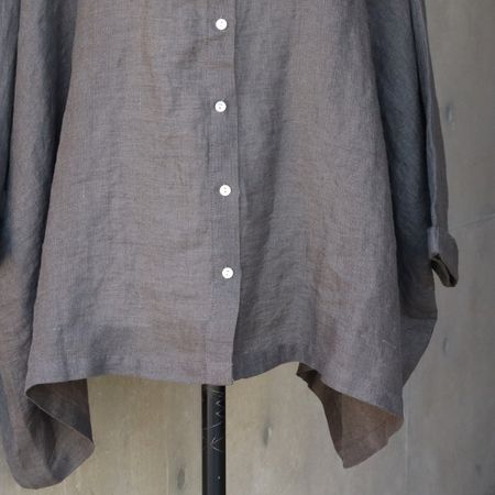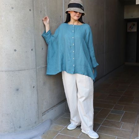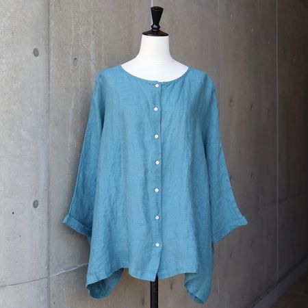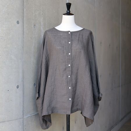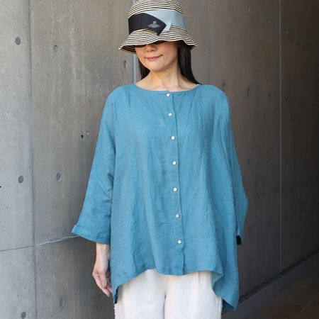 ■生地の表情がやさしく浮かび上がる、リネンシャンブレーの2wayブラウス。