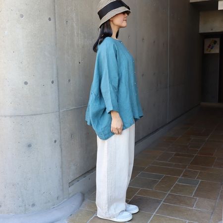 スラブのようなニュアンスのある織りが、力の抜けた自然な風合いを生み出します。