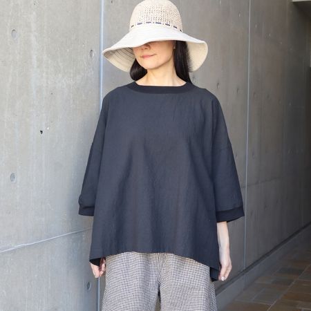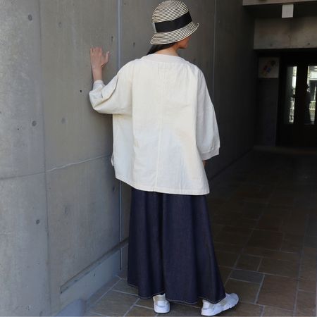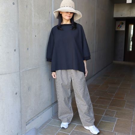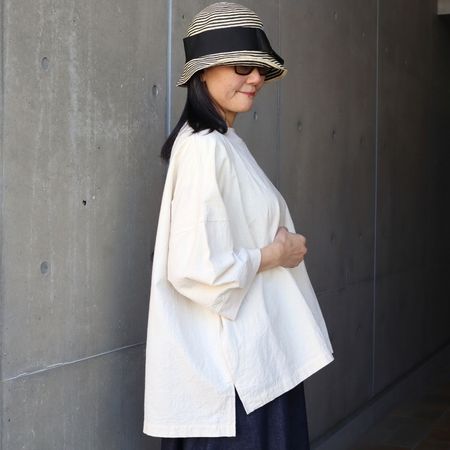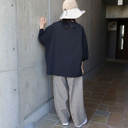 ワイドな身幅とドロップショルダーで、体のラインを拾わないリラックス感のあるAラインシルエット。