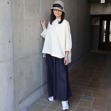 デニムやワイドパンツ、スカートなど、さまざまなボトムスと合わせやすく、日常のカジュアルスタイルに取り入れやすい一着です。